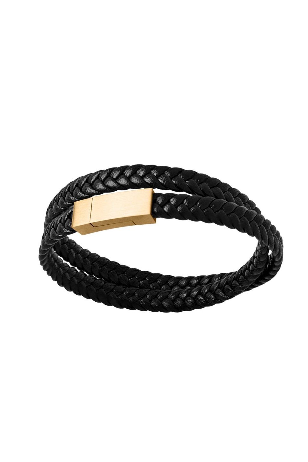 Kožený pletený náramek s rytinou textu na přání - zlatá spona