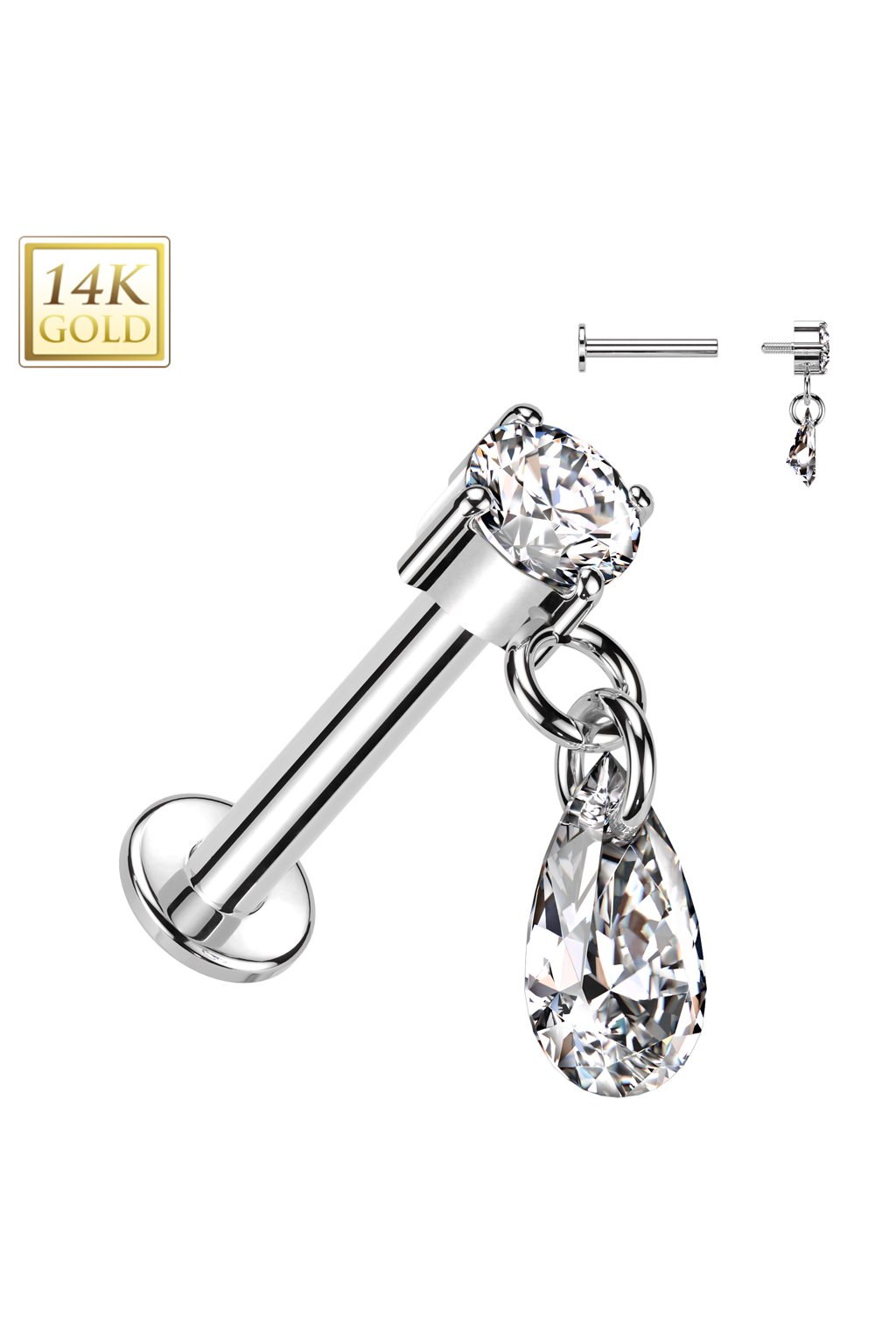 Labreta s vnitřním závitem ze 14kt zlata 585/1000 Zirkonová slza