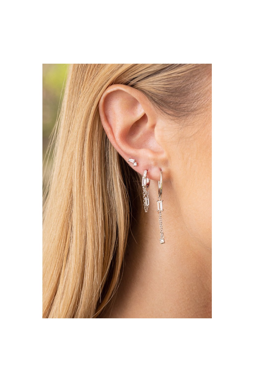 Náušnice ze stříbra s řetízkem a zirkony Fountain Brilliance
