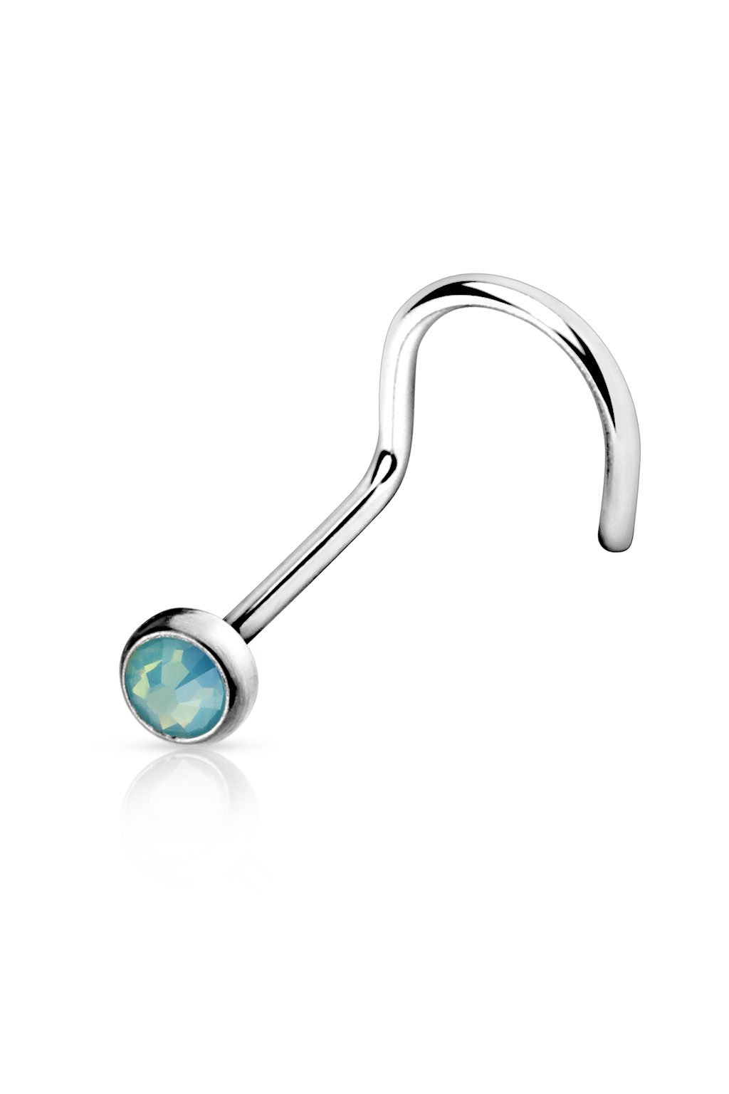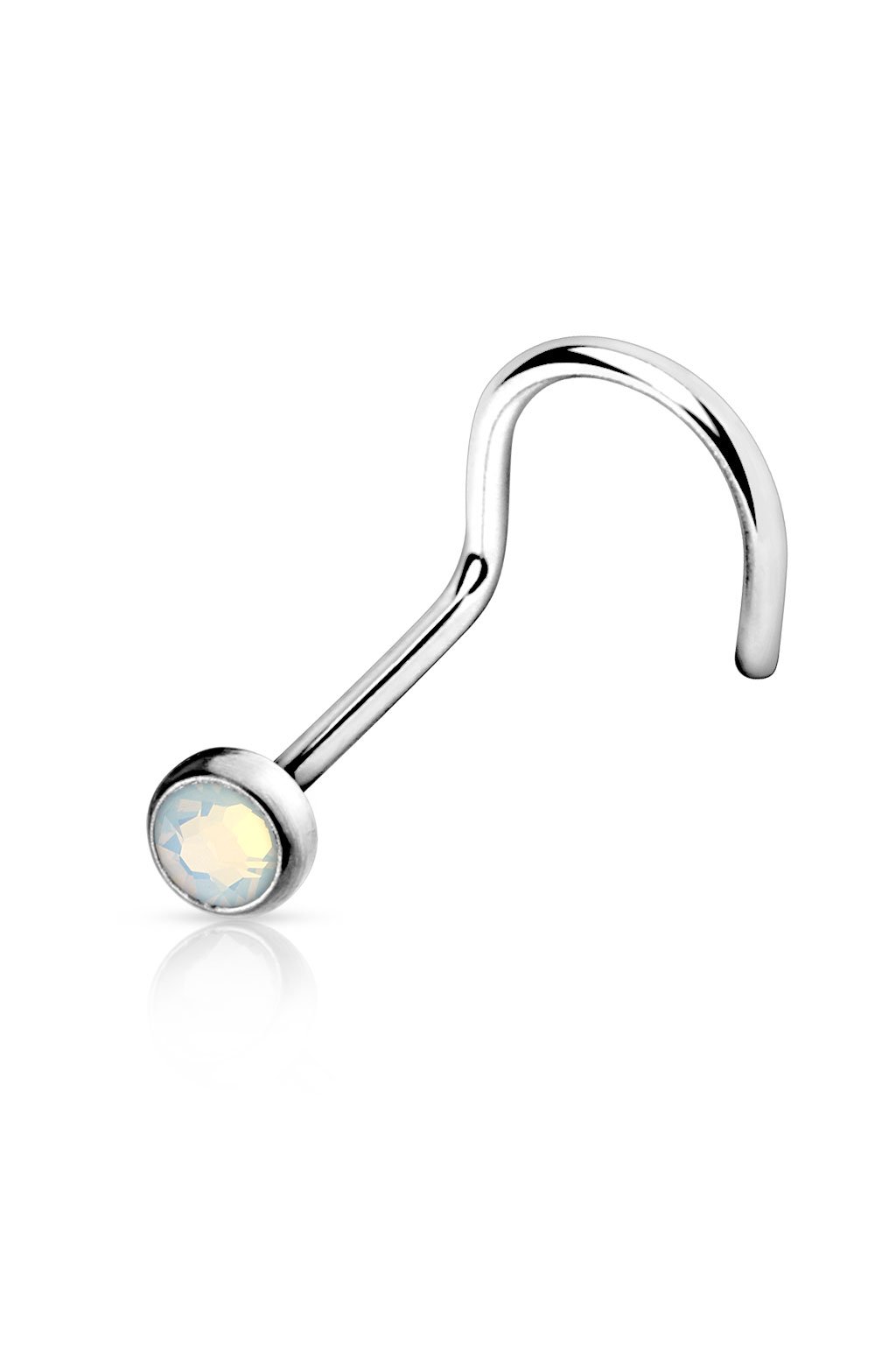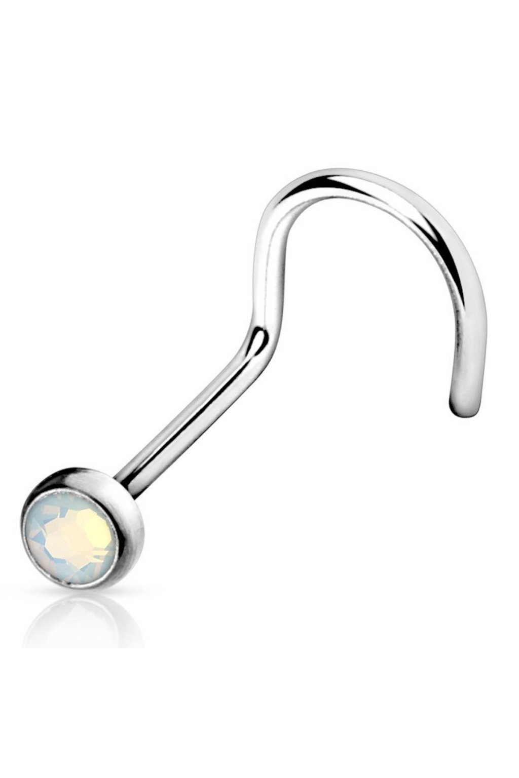 Elegantní nosovka z chirurgické oceli s průhlednou variantou syntetického opálu v různých barvách. Velikost koncovky 2 mm.