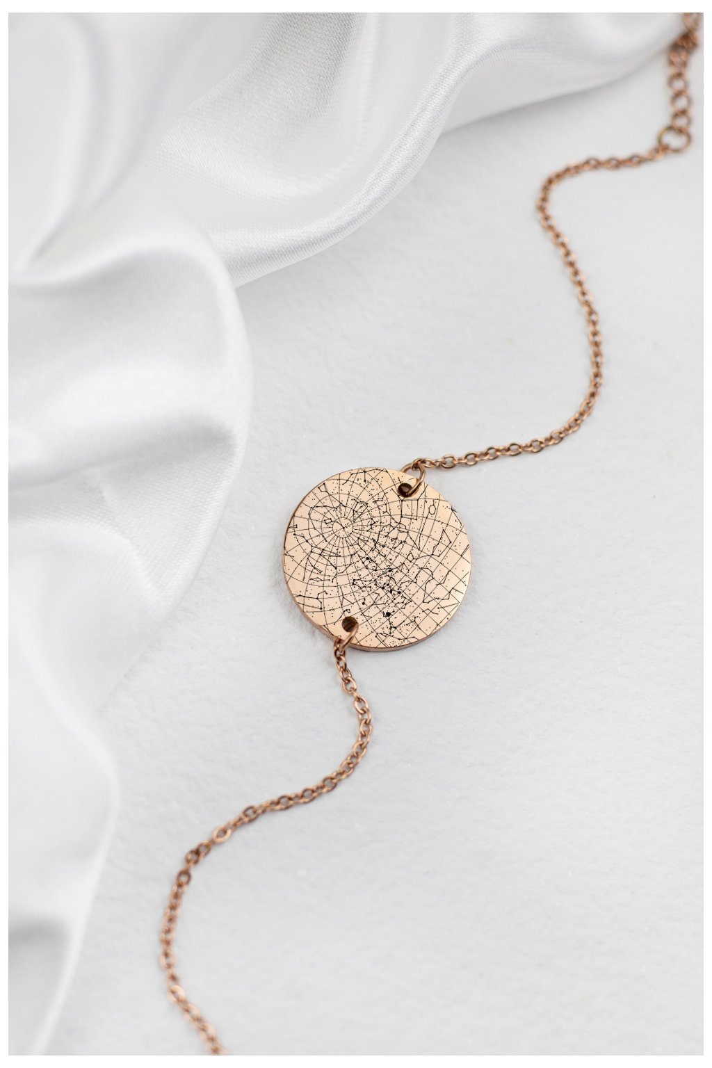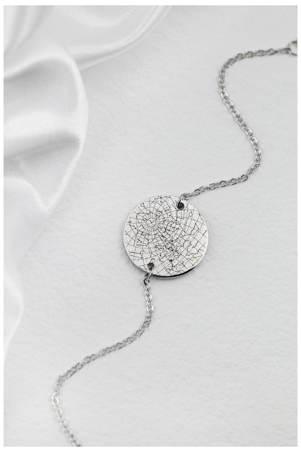 Ocelový náramek s rytinou hvězdné oblohy vašeho místa a data