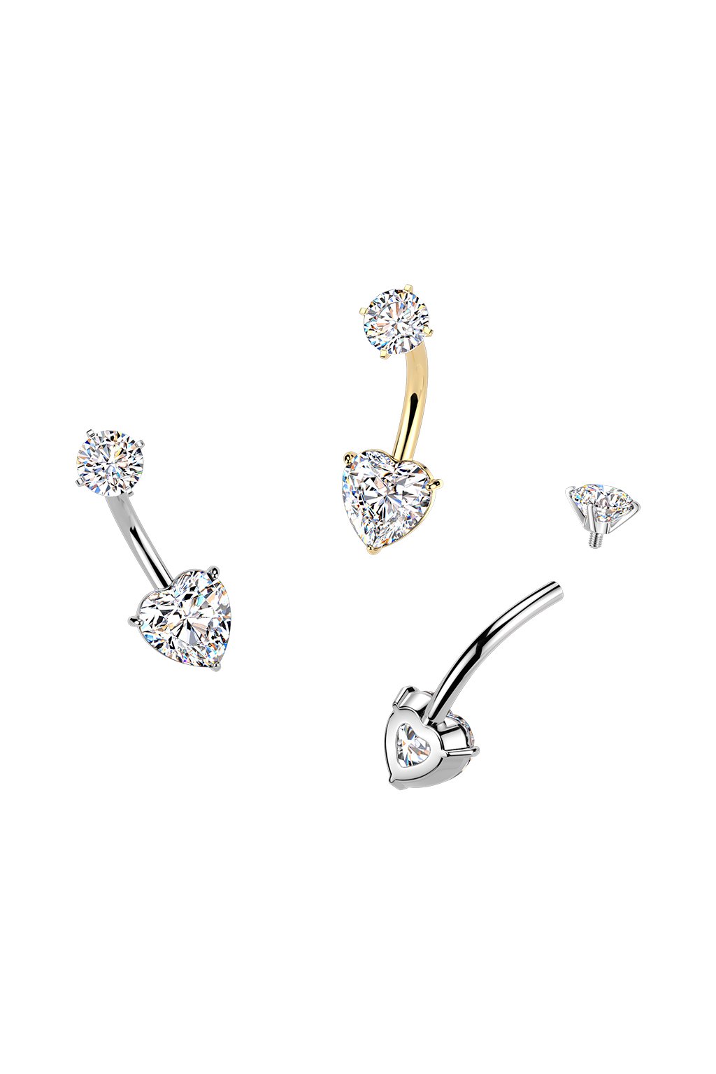 Ocelový piercing do pupíku s vnitřním šroubováním srdce