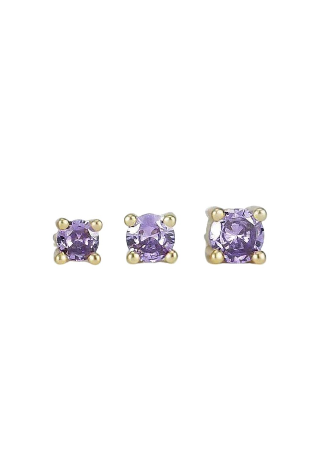 Sada 3 stříbrných pozlacených puzetových náušnic s fialovými zirkony Dainty Dots Large