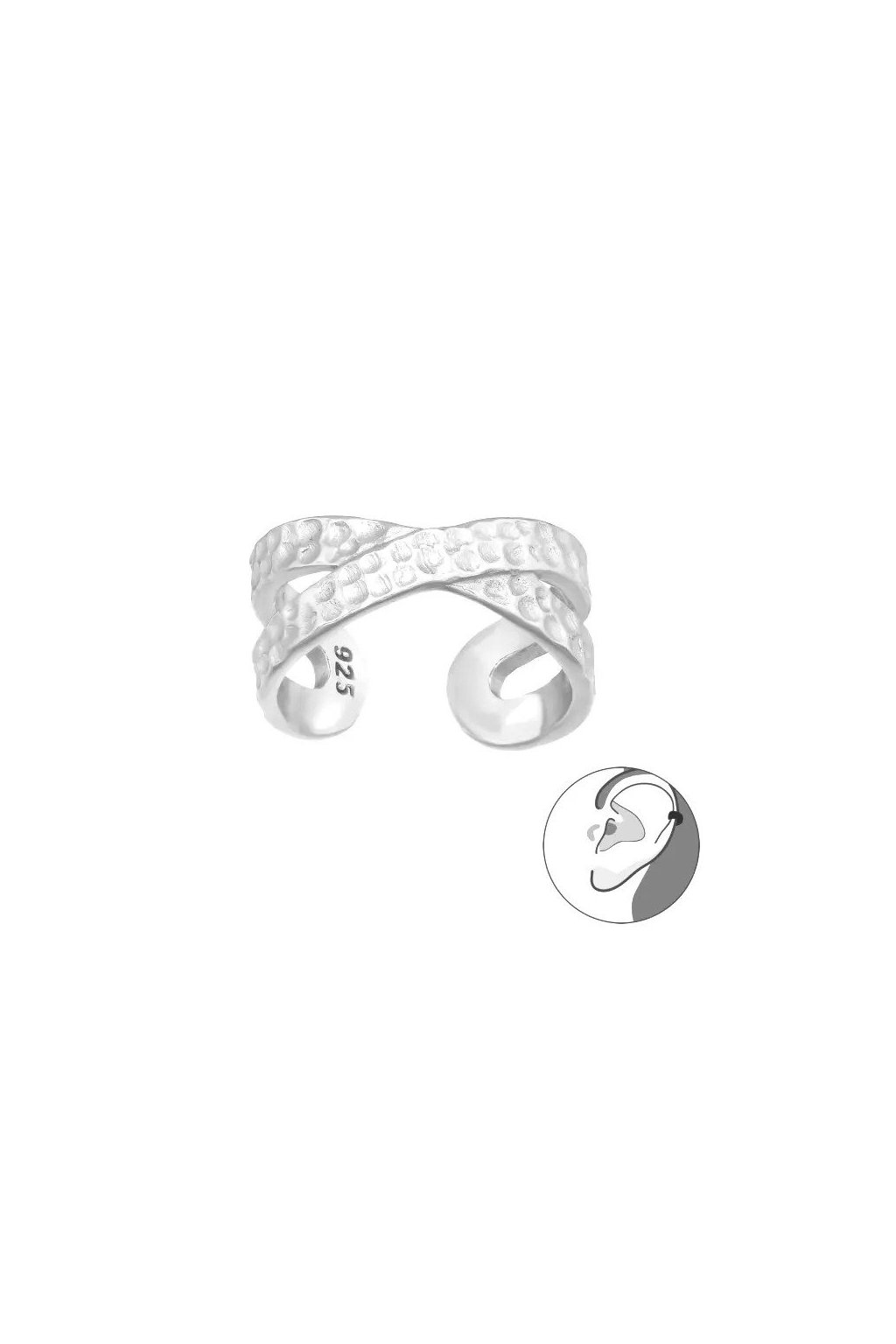 Stříbrná ear cuff záušnice CROSS LINE HAMMERED