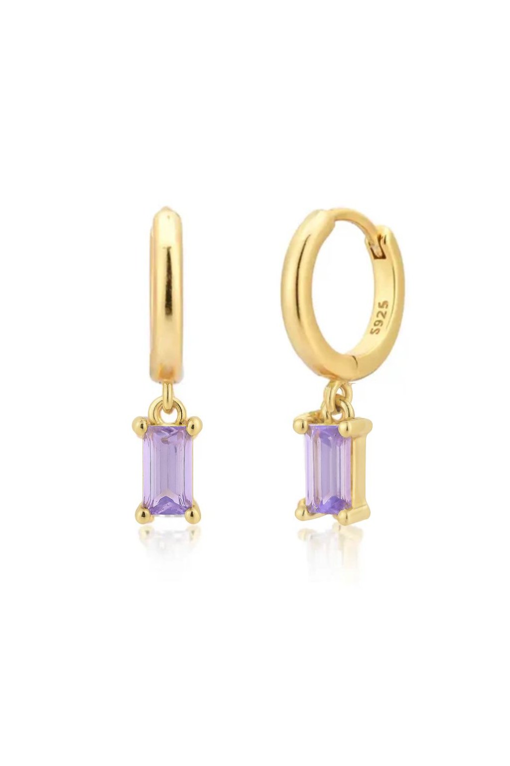 Stříbrná pozlacená kruhová náušnice Crystal glow - Lavender