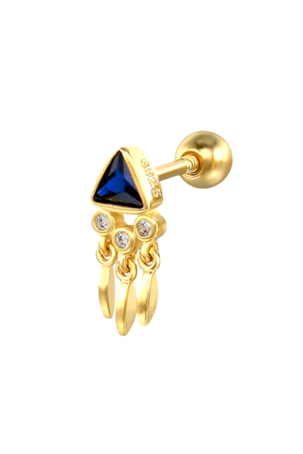 Stříbrná zlacená náušnice - činka Molly tmavě modrá