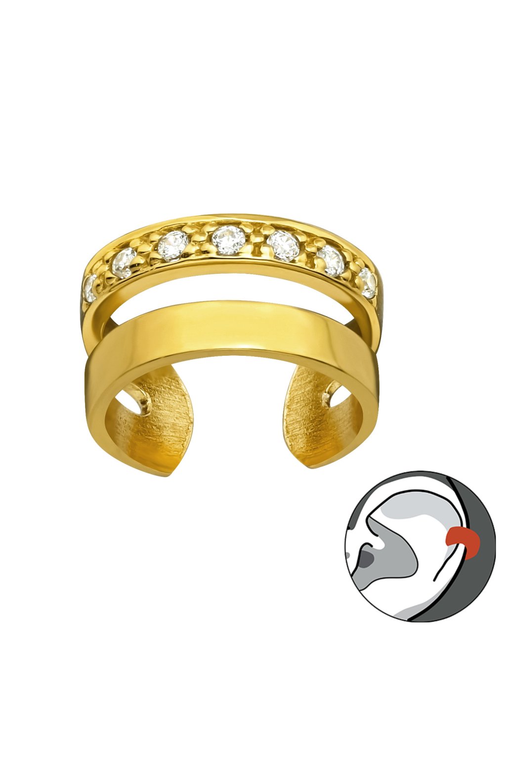 Stříbrná zlacená záušnice Dvojitý pás se zirkony