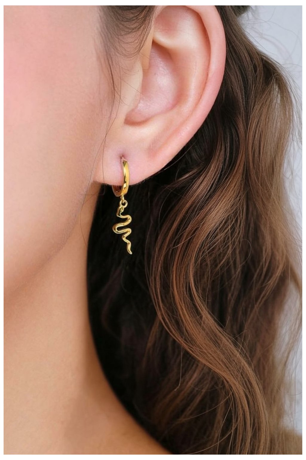 Minimalistické kroužkové náušnice s jemným hadím přívěskem, který se ladně vine a dodává šperku výrazný, ale elegantní charakter.