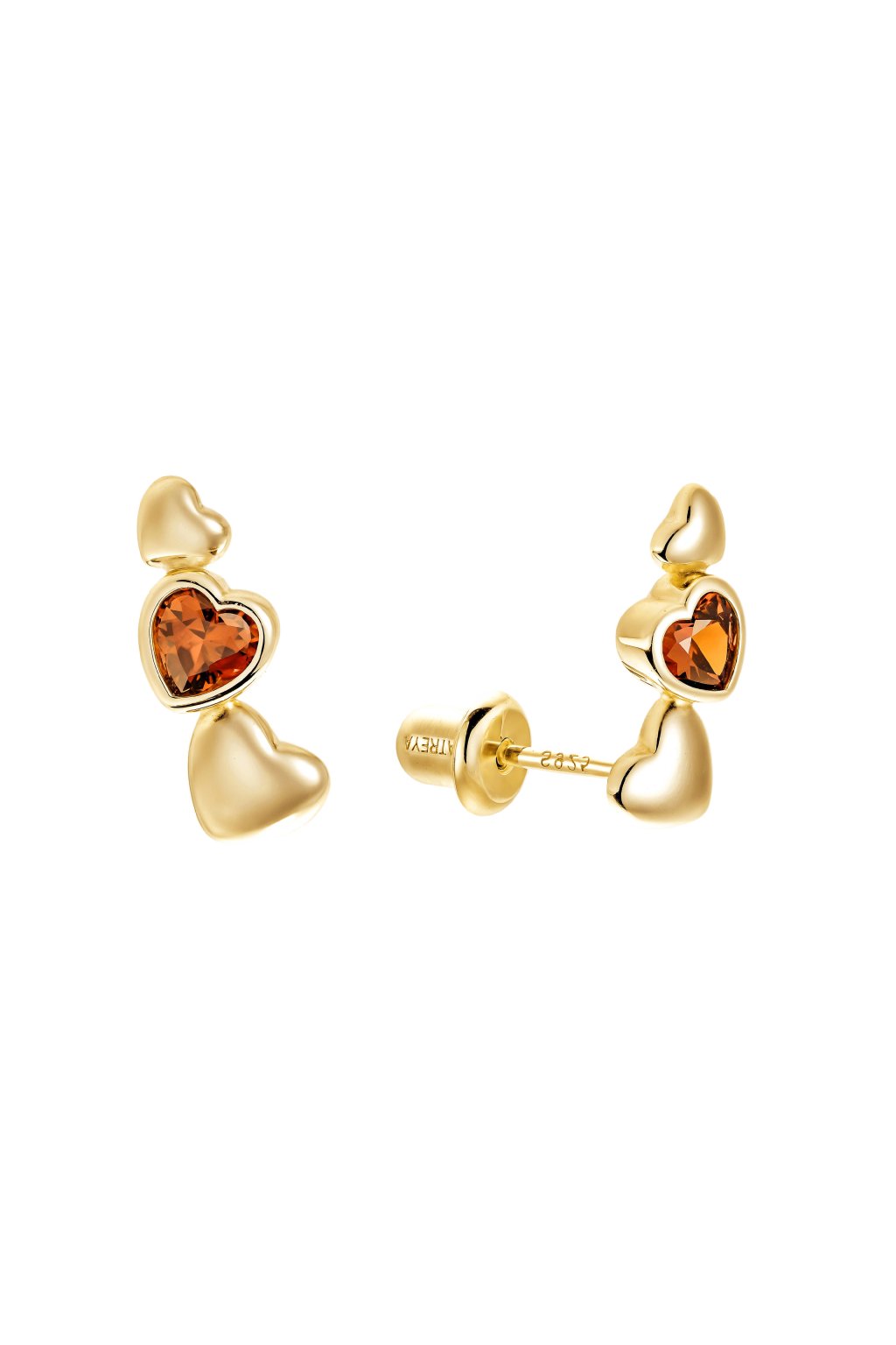 Stříbrné pozlacené náušnice na šroubek Triple heart
