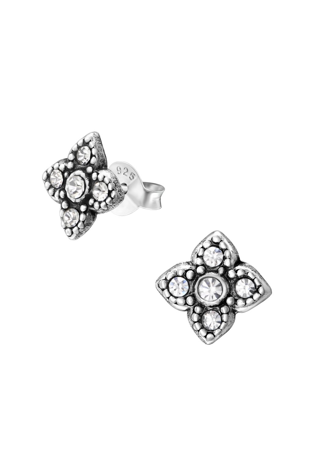 Stříbrné puzetové náušnice - pecky Flower zirkonia