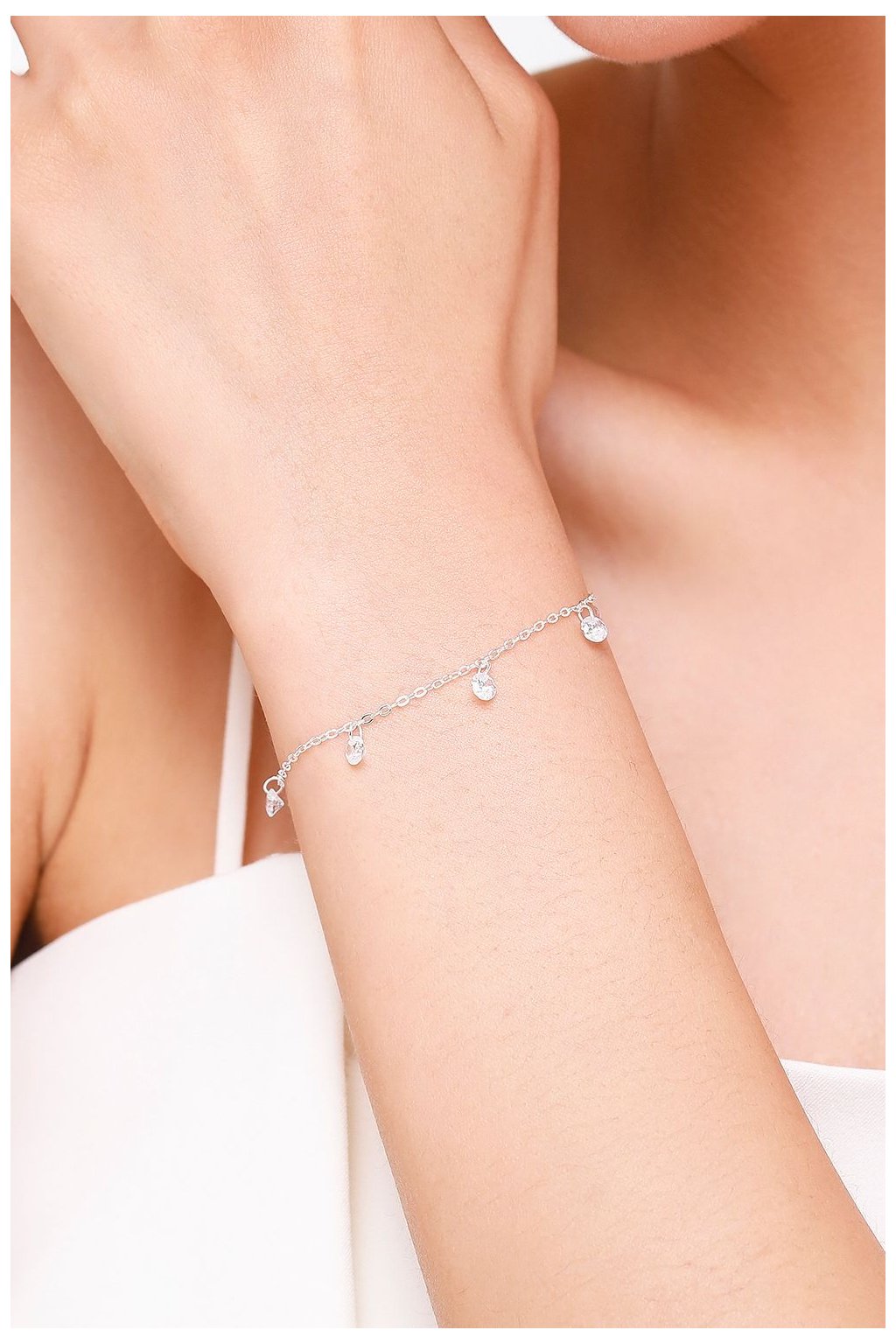 Zářivý náramek ze stříbra 925/1000 zdobený sedmi precizně broušenými čirými zirkony o velikosti 4 mm je ideální volbou pro milovnice jemné elegance.