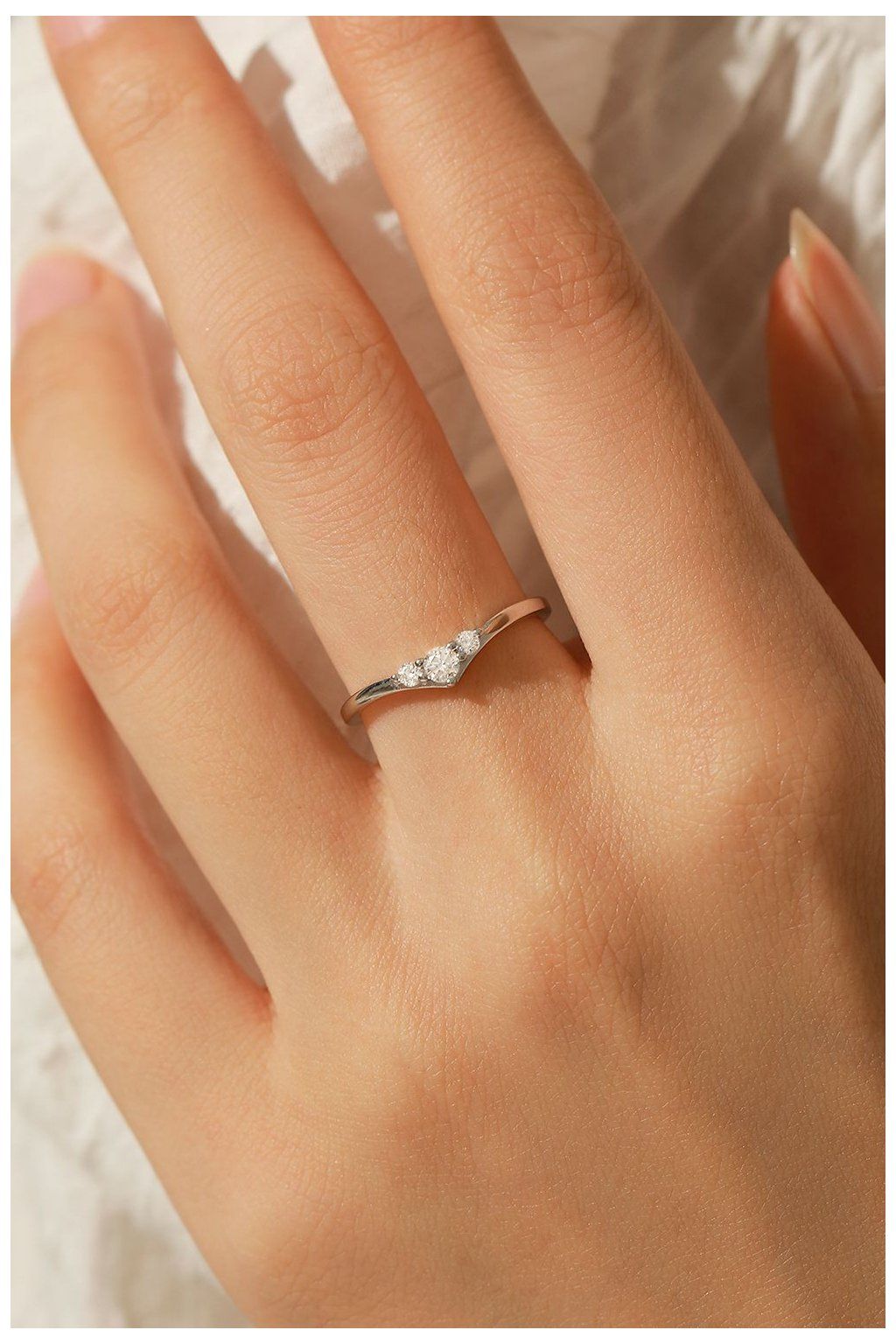 Aurea je esence harmonie a vyváženosti. Tři moissanitové kameny v dokonalé linii vytváří kompozici, která působí klidně, jistě a přirozeně elegantně. Každý z nich zachycuje světlo jinak – dohromady ale tvoří jeden souvislý, jemně pulzující třpyt.
