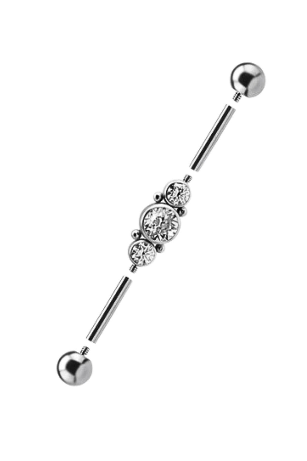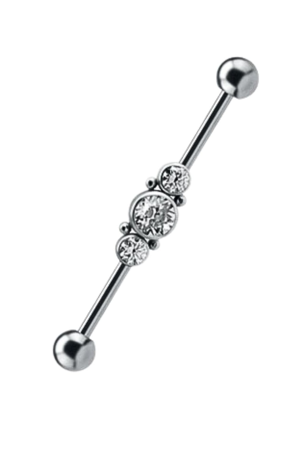 Titanová činka č. 1 pro Industrial piercing s vnitřním závitem a čirými prémiovými zirkony