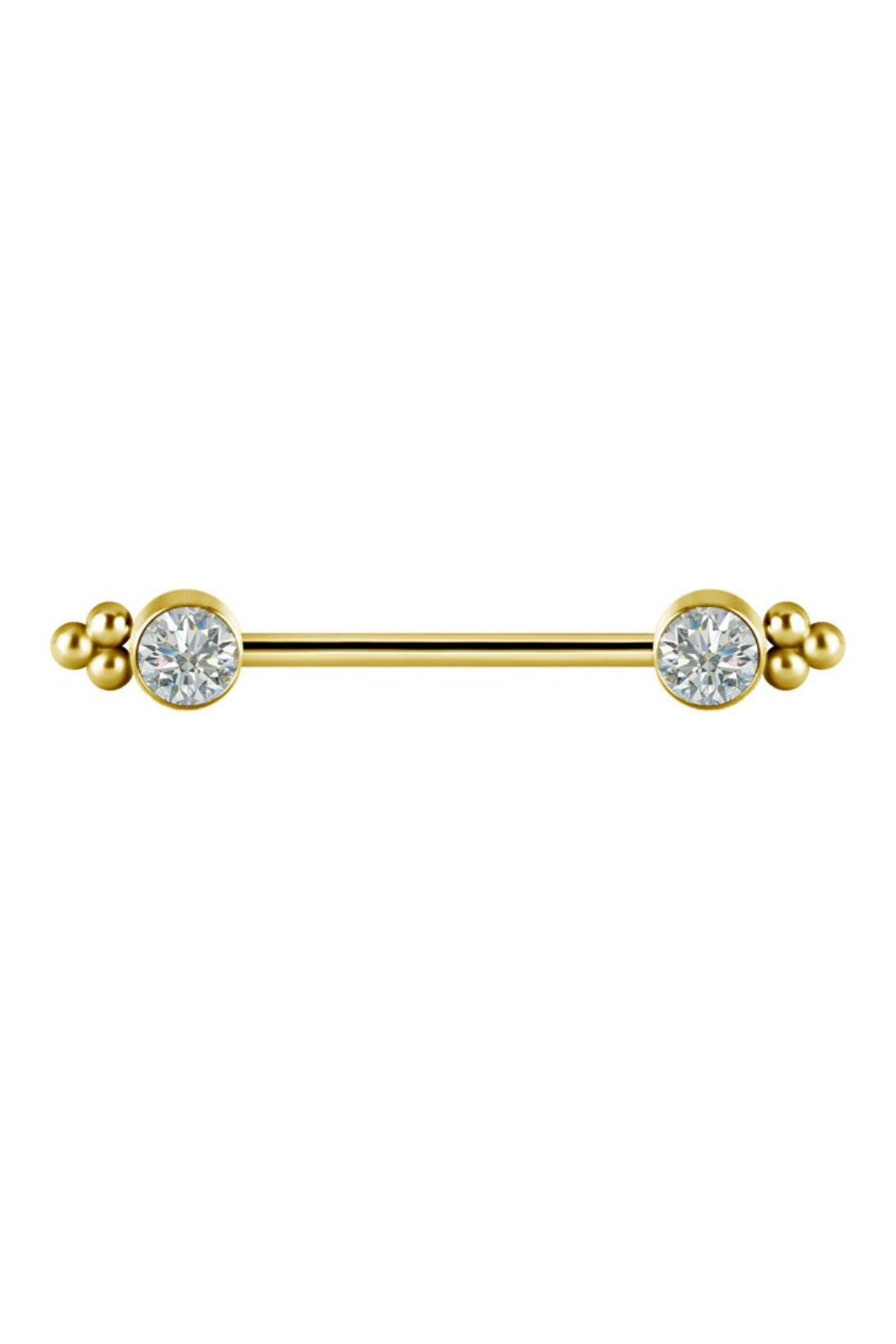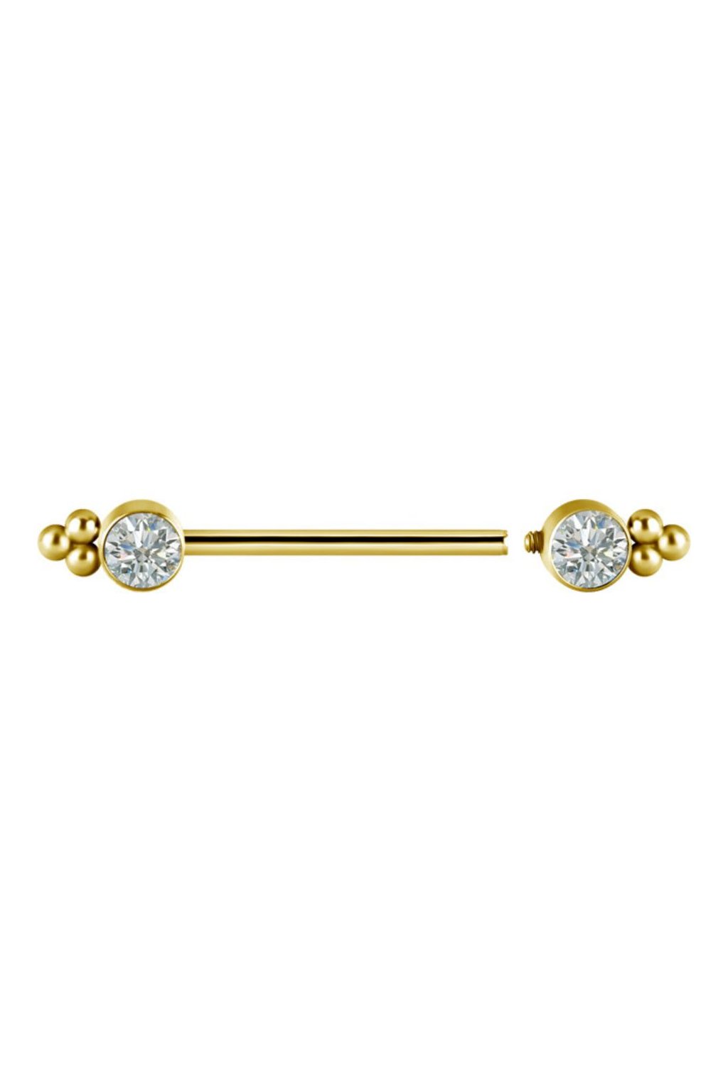 Titanová činka do bradavek s vnitřním závitem a čirými prémiovými zirkony #02 - zlatá