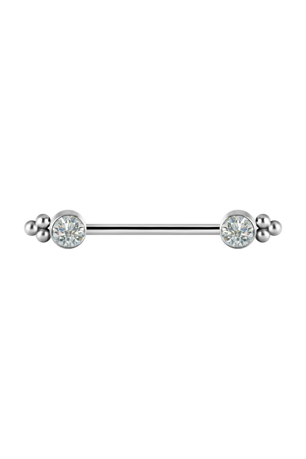 Titanová činka do bradavek s vnitřním závitem a čirými prémiovými zirkony #02