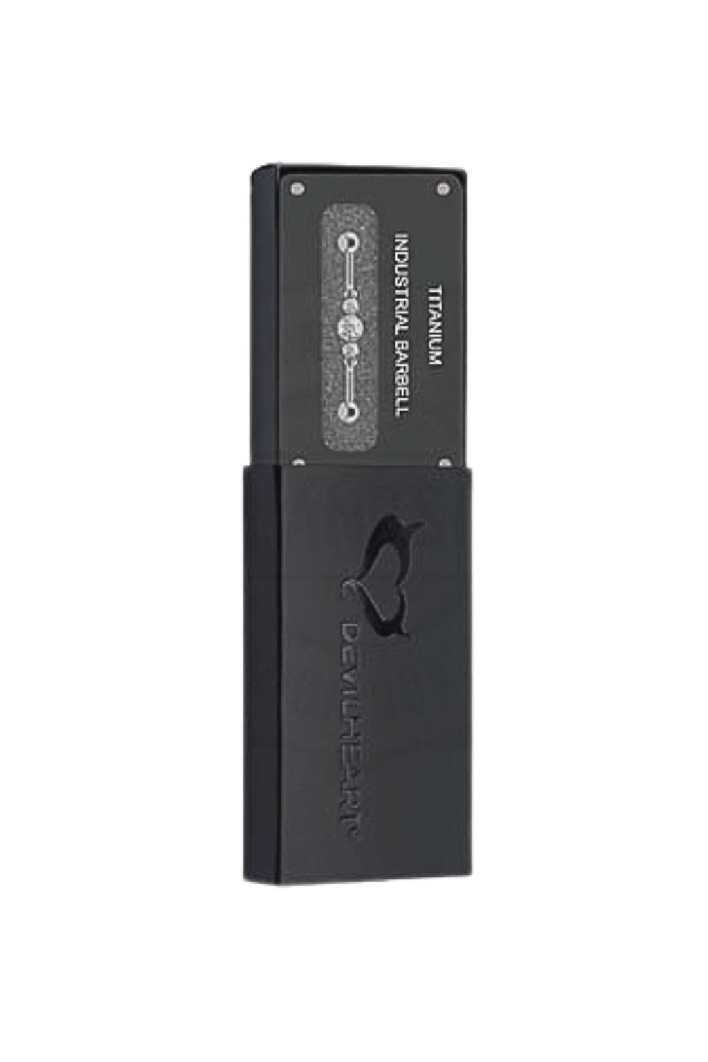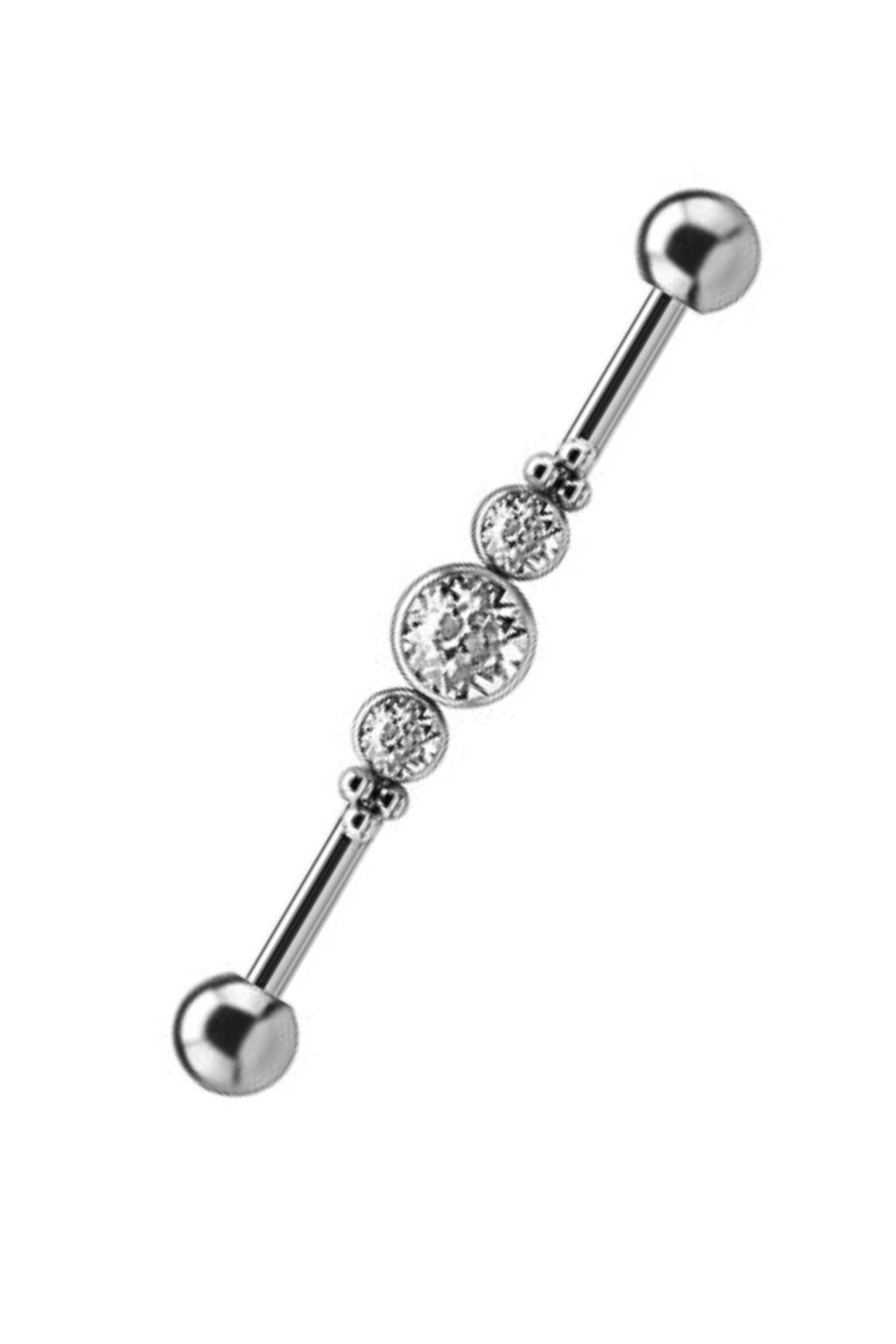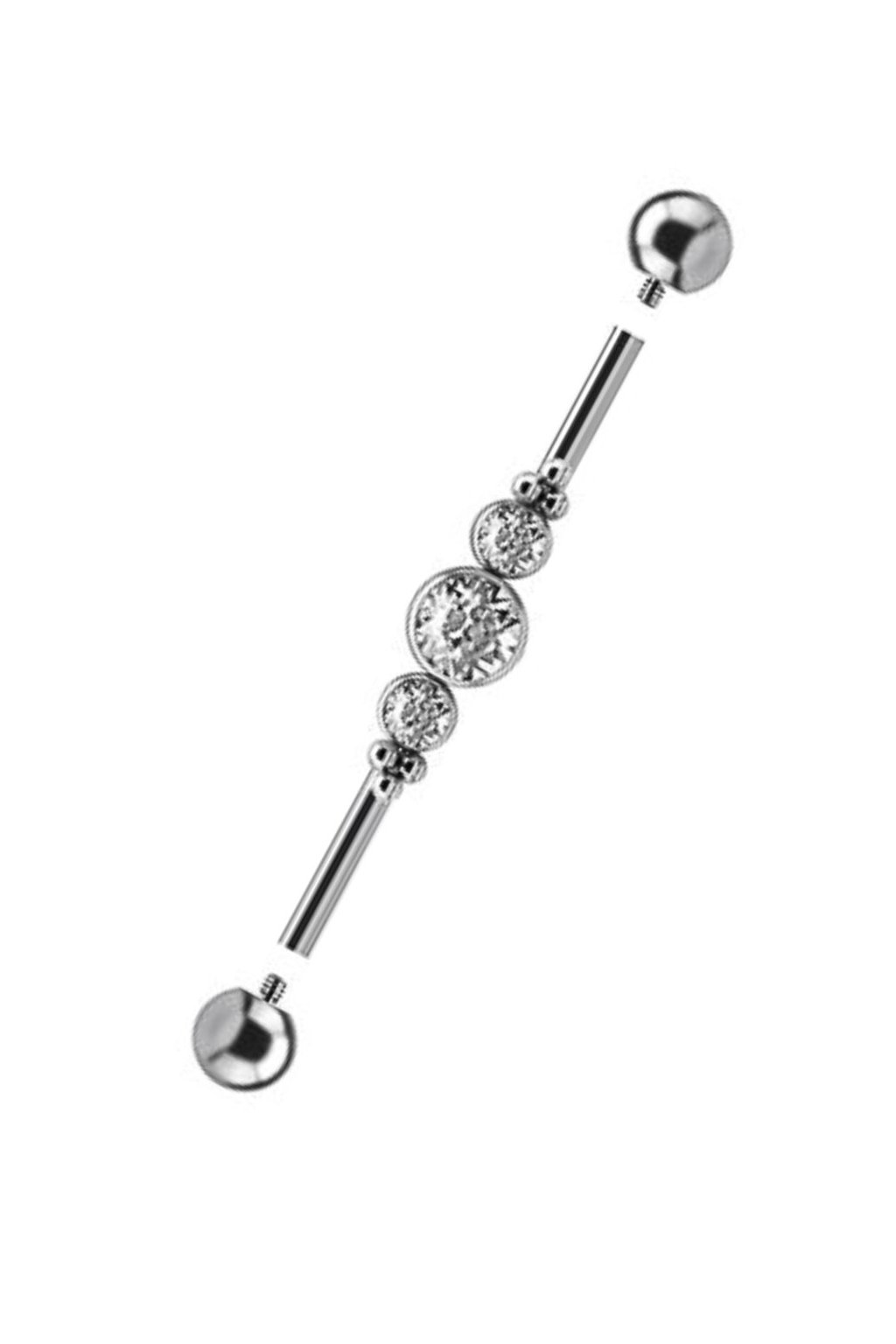 Titanová činka č. 2 pro Industrial piercing s vnitřním závitem a čirými prémiovými zirkony