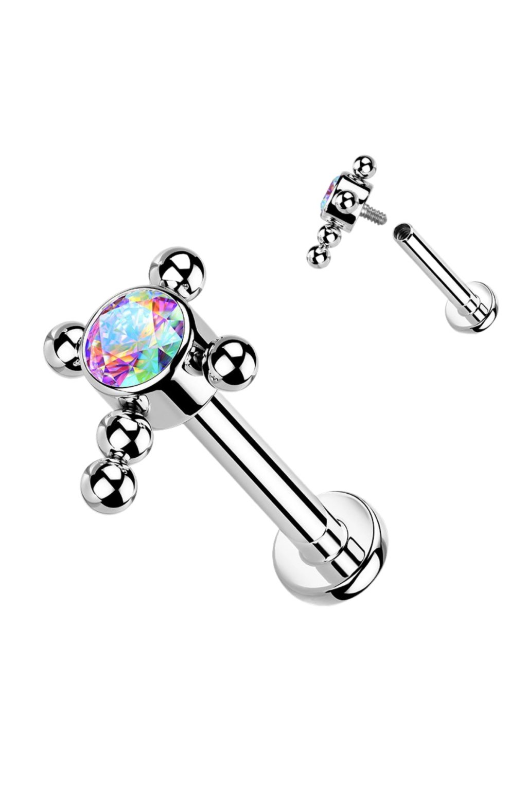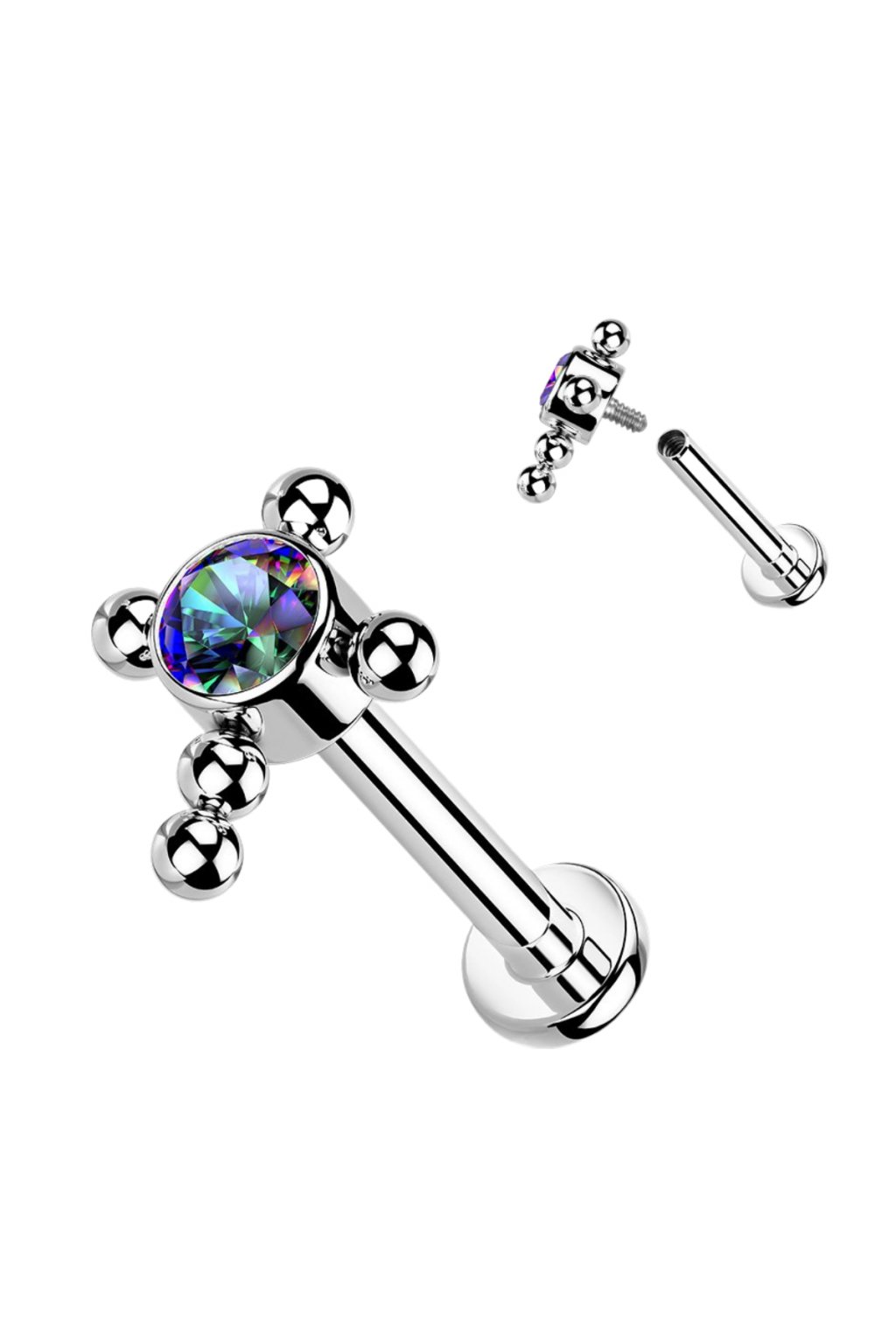 Titanová labreta s vnitřním závitem a krystalovým křížem