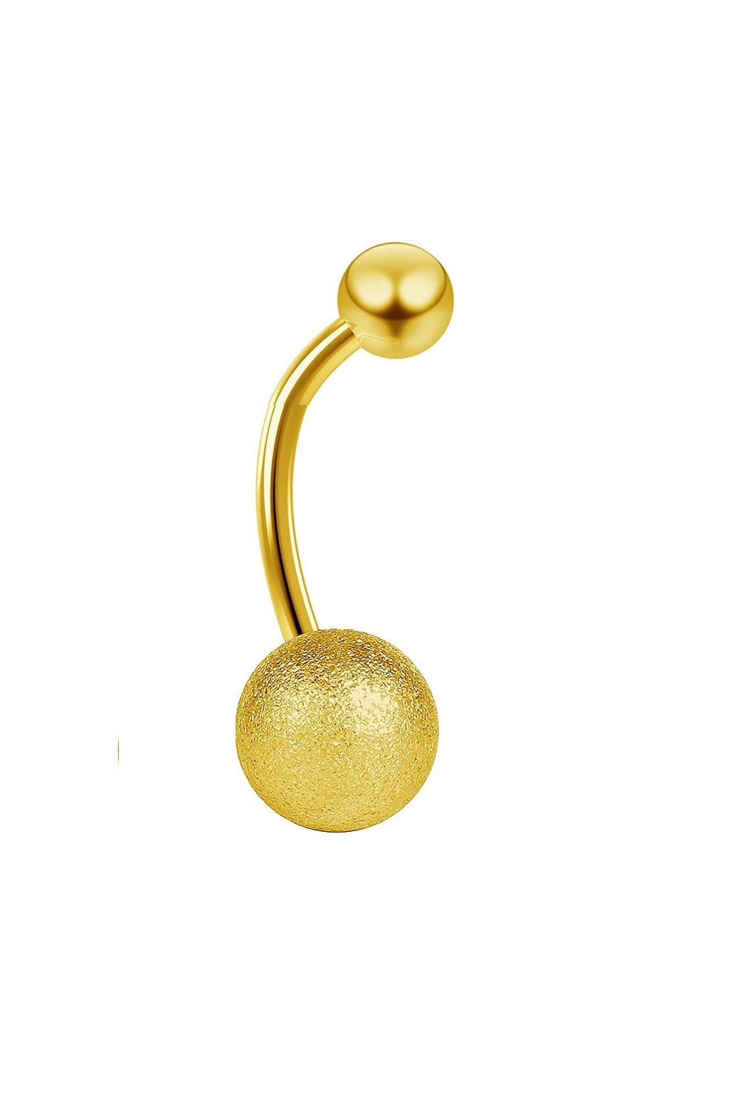 Zlatý ocelový piercing do pupíku s jiskřivě matnými kuličkami